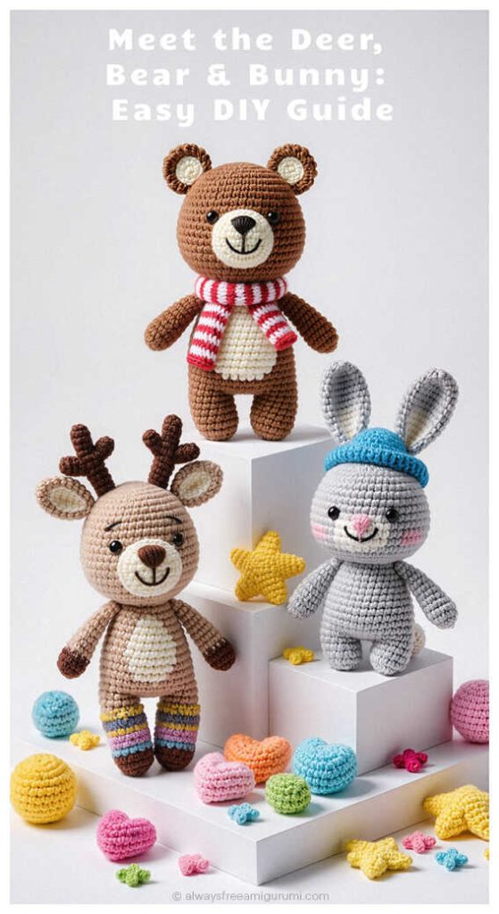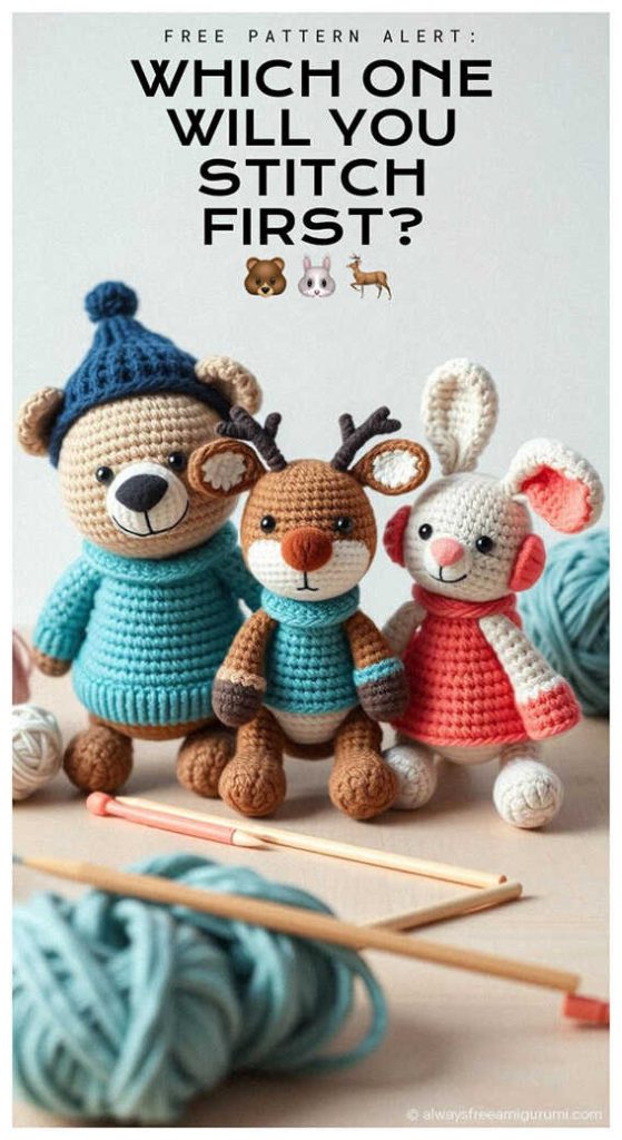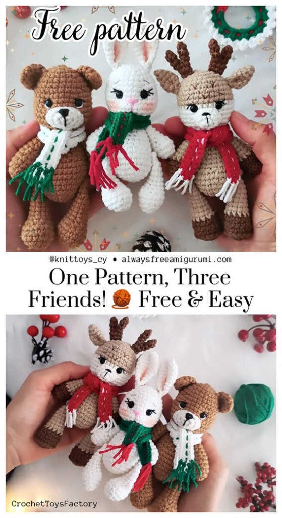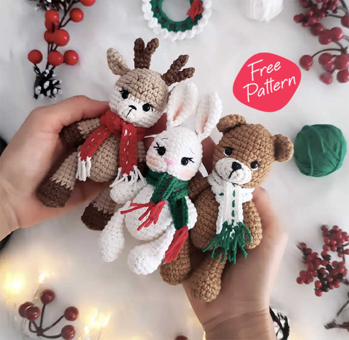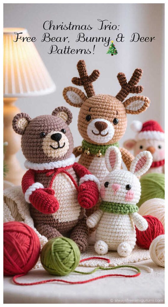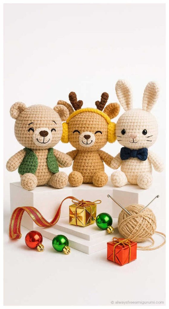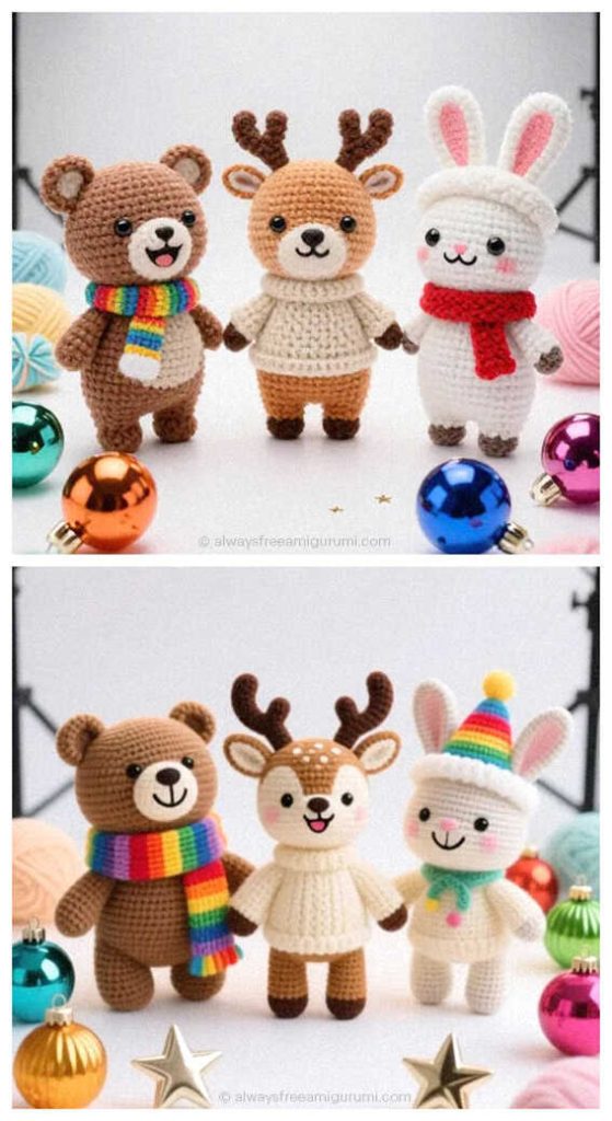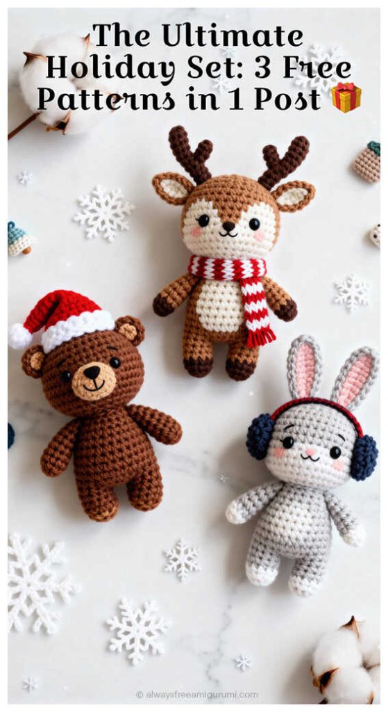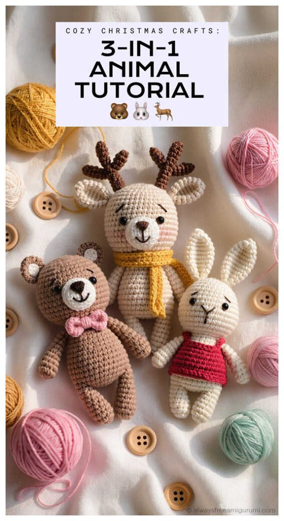 3-in-1 Free Crochet Christmas Animal Patterns for Beginners: Easy & Cute!