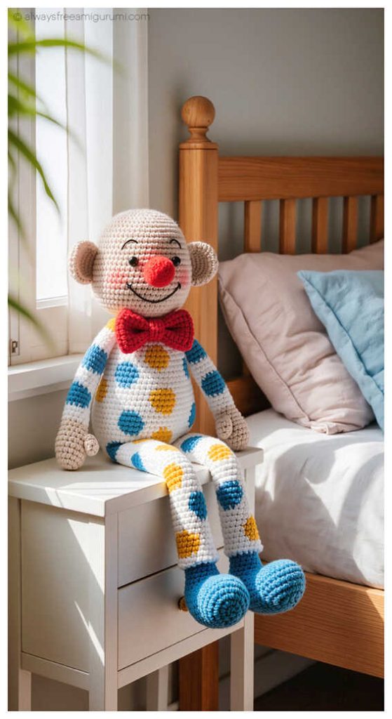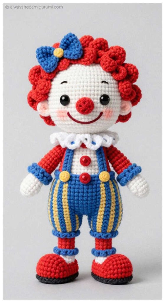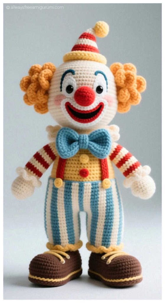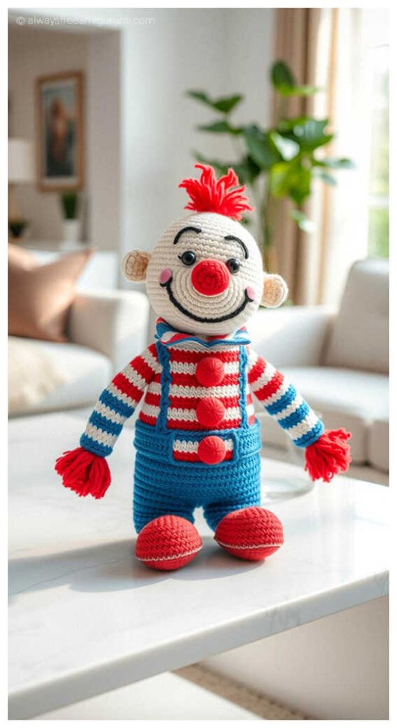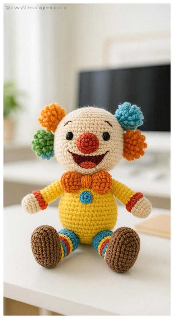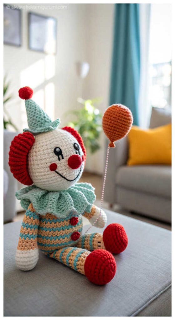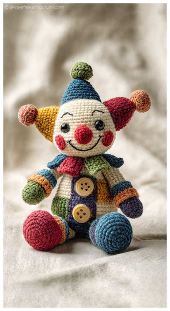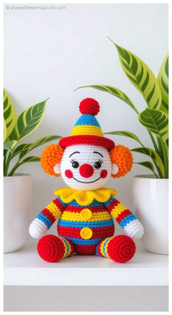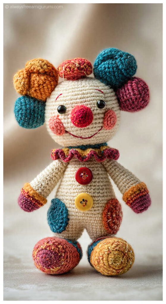 In the final stage, you will shape the facial features, assemble all the pieces, and add the finishing touches that give the clown its playful personality. This lovely project works beautifully as a handmade gift, a fun decor piece for children’s rooms, or a bright addition to any amigurumi collection. With its clear structure and smooth flow, the tutorial keeps the process enjoyable from beginning to end and finishes with delightful amigurumi clown ideas to spark your next creative project.