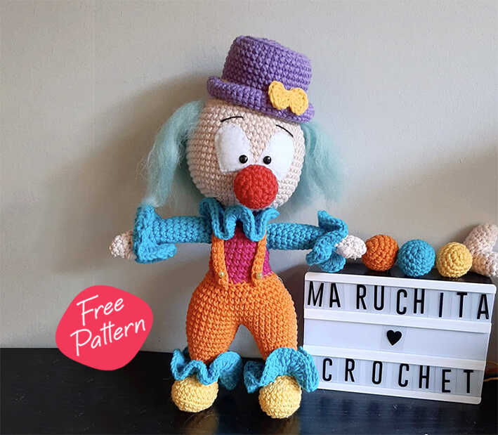 Original amigurumi clown doll pattern by Maruchita Crochet. Published here in translated form for crochet enthusiasts. If you use or share this pattern, please kindly credit the designer and support their work by tagging and visiting their Instagram page: @maruchitacrochet