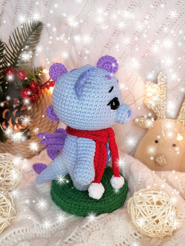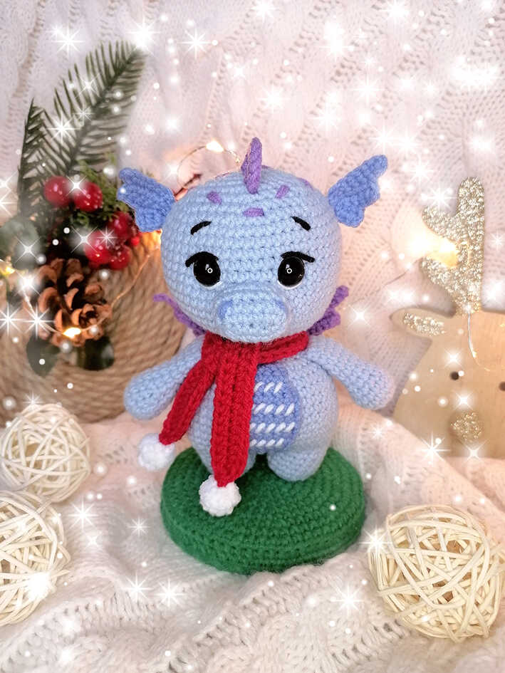 The finished dragon is about 11 cm tall and uses lightweight yarn, a 1.9 mm crochet hook, safety eyes, fiberfill stuffing, and simple embroidery details. Cotton yarn gives clean stitches and sharp definition. Velvet yarn can also be used for a chunky plush version, but the toy will turn out much larger and softer. If you enjoy small fantasy projects like this, you may also like the Mini Crochet Dinosaur for similar inspiration.