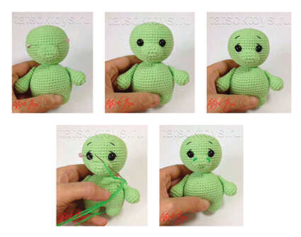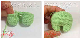 Attach the ears 8 sc away from the eyebrows, at the level of the lower edge.