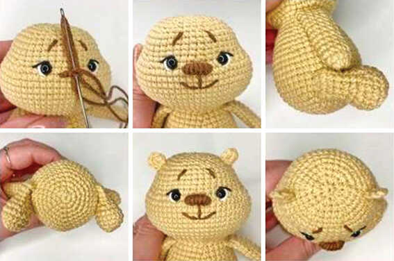 At this stage, it is convenient to insert the eyes between R36 and R37 with a distance of 8 sc between them.