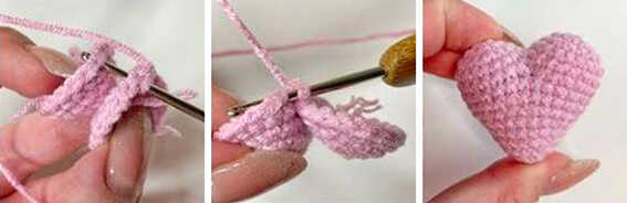 Place the two pieces together as shown in the photos and join them by working 3 sc through both pieces.