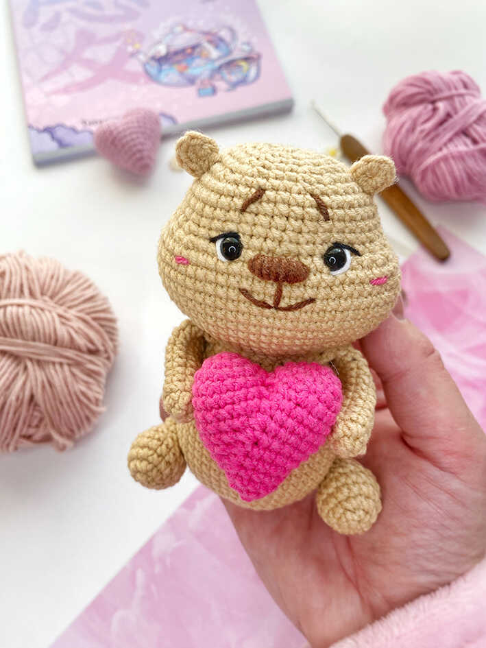 A warm amigurumi project highlighted by soft handmade details and a lovely love theme.