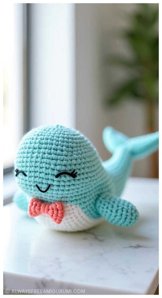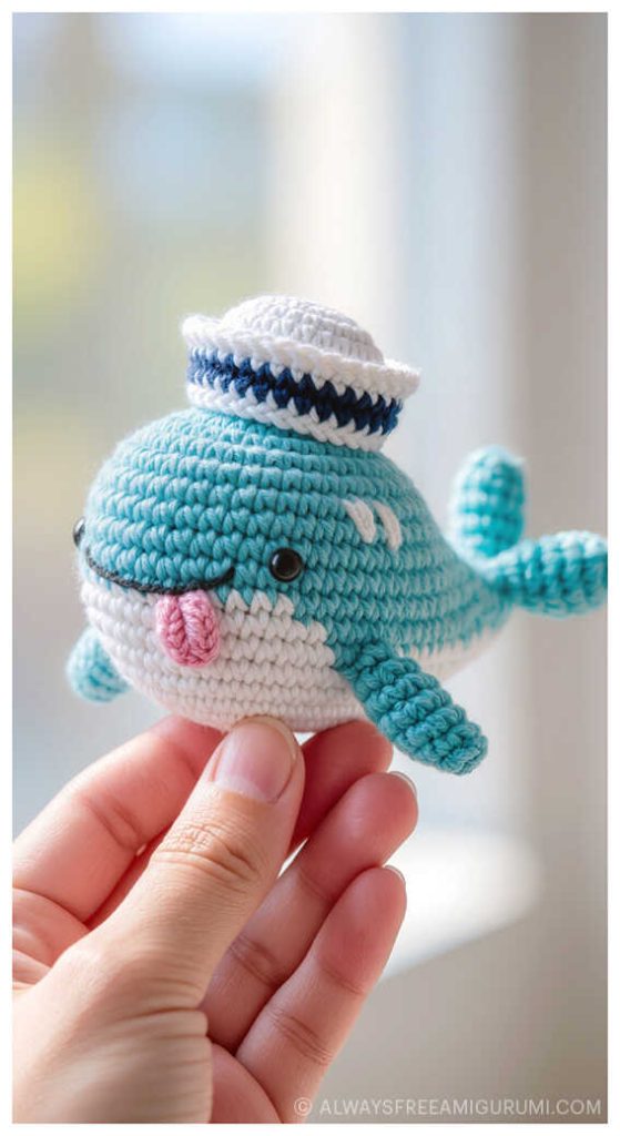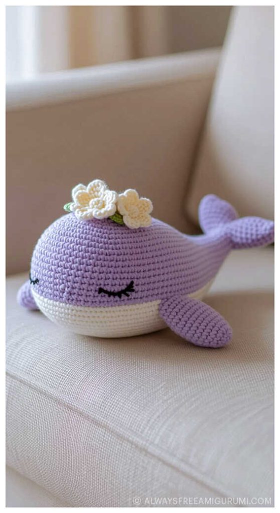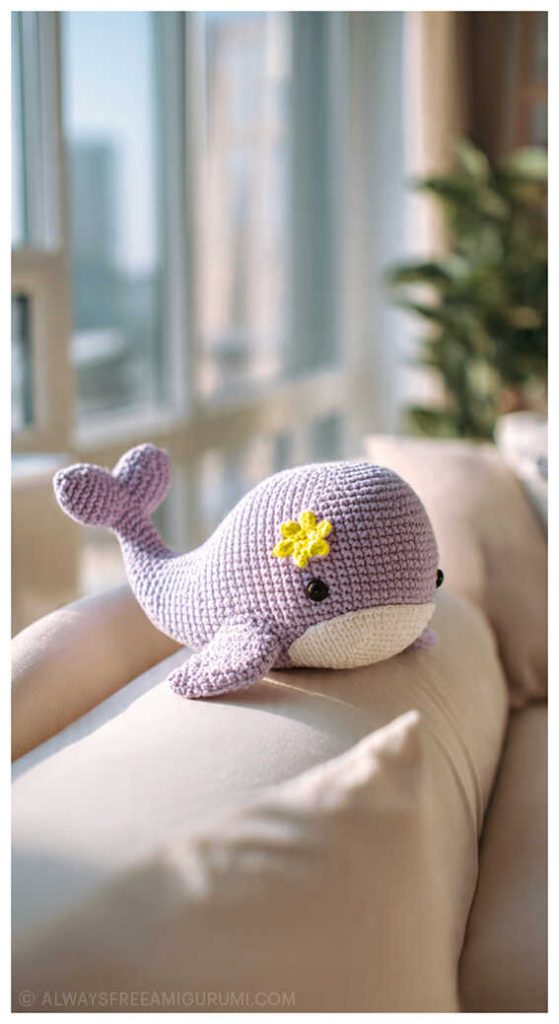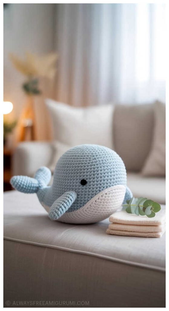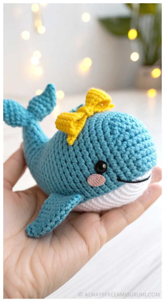 Bring a touch of soft ocean magic to your crochet collection with the Amigurumi Fluffy Baby Whale Free Crochet Pattern designed by the talented Marina Kolmykova (dailydoll.shop). This adorable project is easy, beginner friendly, and perfect for anyone who enjoys creating charming animals with a “step by step” approach. The finished whale measures approximately 13 cm, and its warm, cozy look comes from using fluffy yarns such as Katia Air Alpaca, Schachenmayr Fashion Soft Mix, Semenovskaya Lada, and similar options. In this pattern, the head, body, and tail are worked as one piece, while the fins are sewn on for a clean, polished finish. You’ll also knit a tiny baktus scarf with 2 mm needles, adding extra personality to your handmade whale.