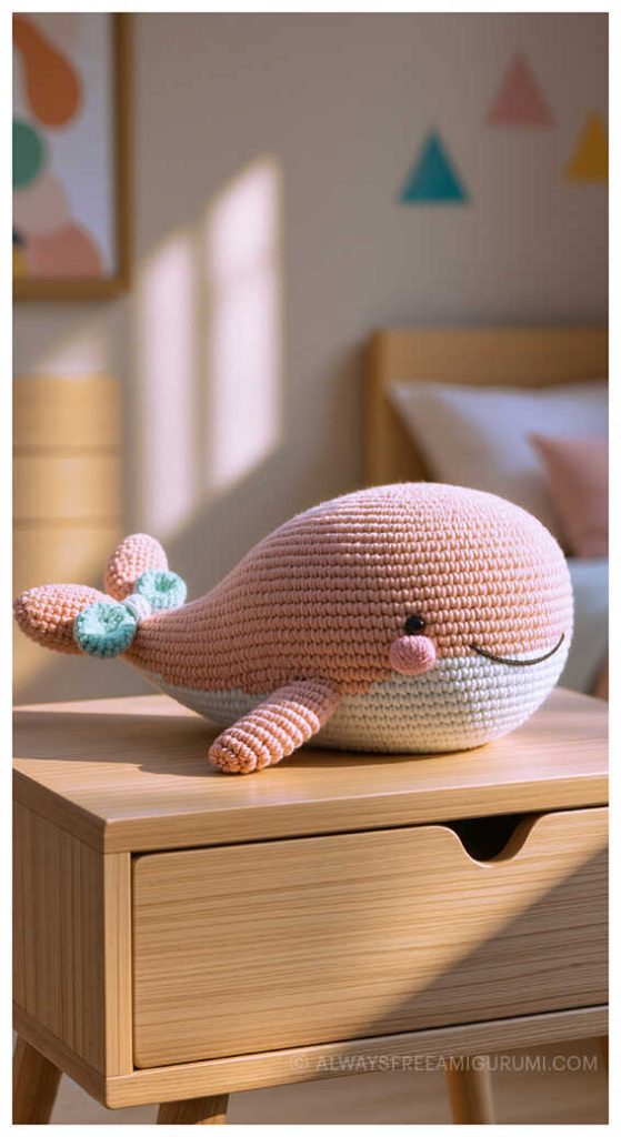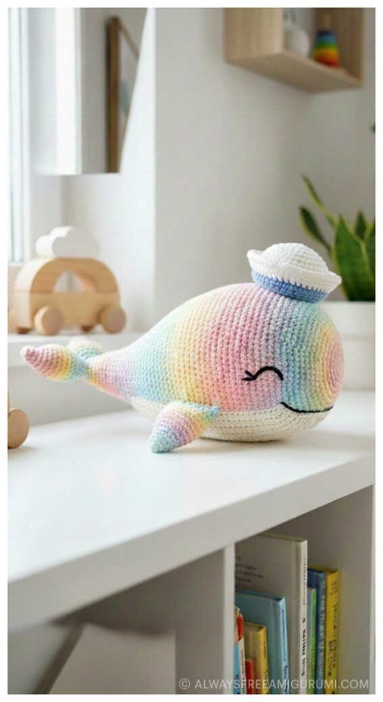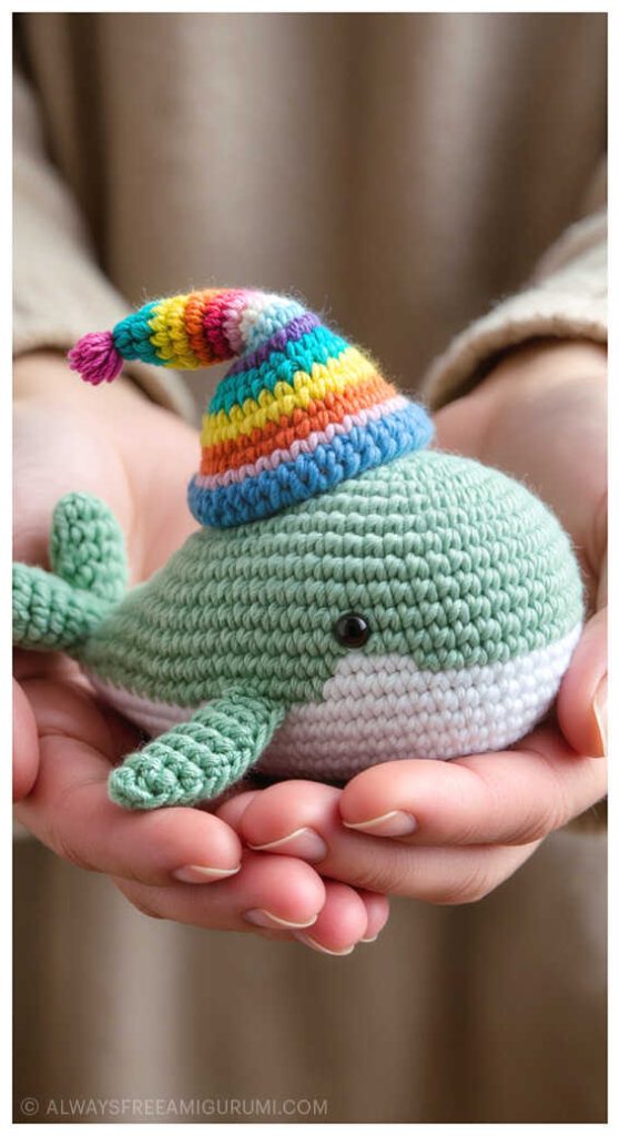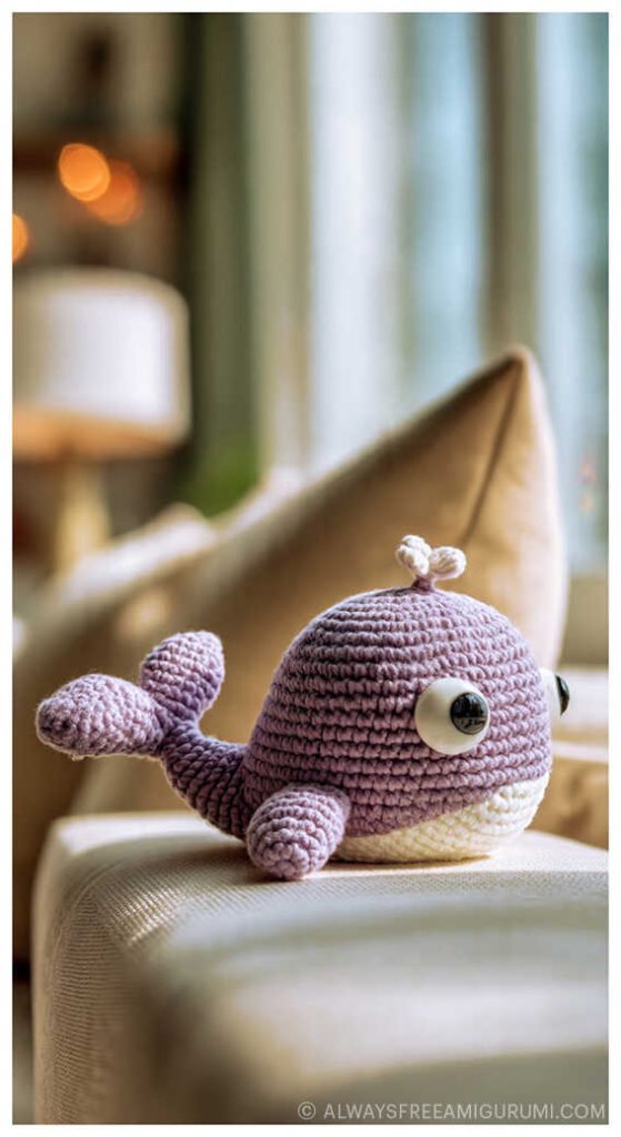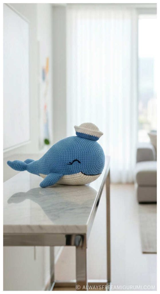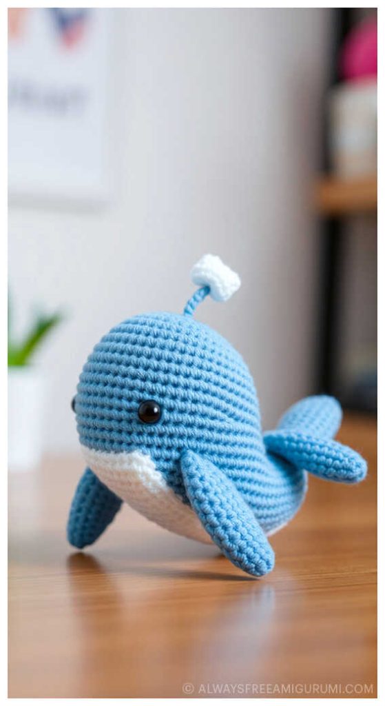 Bring a touch of soft ocean magic to your crochet collection with the Amigurumi Fluffy Baby Whale Free Crochet Pattern designed by the talented Marina Kolmykova (dailydoll.shop). This adorable project is easy, beginner friendly, and perfect for anyone who enjoys creating charming animals with a “step by step” approach. The finished whale measures approximately 13 cm, and its warm, cozy look comes from using fluffy yarns such as Katia Air Alpaca, Schachenmayr Fashion Soft Mix, Semenovskaya Lada, and similar options. In this pattern, the head, body, and tail are worked as one piece, while the fins are sewn on for a clean, polished finish. You’ll also knit a tiny baktus scarf with 2 mm needles, adding extra personality to your handmade whale.