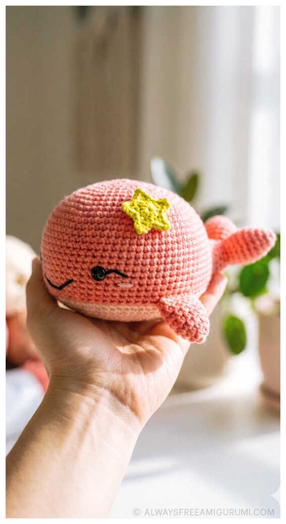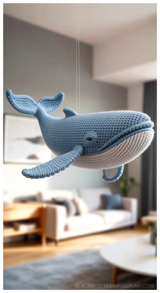 To get started, gather simple tools like a 1.3 mm crochet hook, 5 mm safety eyes, soft stuffing, a decorative button, and a pet brush to fluff up your yarn. You’ll also need yarn for the knitted baktus, a yarn needle, and scissors—everything you need can be purchased here. Whether you’re new to amigurumi or looking for your next relaxing, creative project, this fluffy whale is a joy to make and display. A heartfelt thank-you to Marina Kolmykova for sharing this cute and cozy design, and don’t forget to check the end of the pattern for more beautiful amigurumi whale ideas to inspire your next creation.